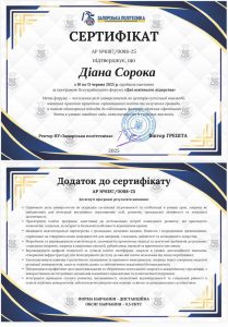 Сорока Д. Всеукраїнський форум «Дні освітнього лідерства»; 10–11.06.2025; 0,5 кредиту ECTS; Національний університет «Запорізька політехніка» (Україна). |
