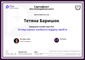 Баришок Т. Онлайн-курс «Огляд оцінки шийного відділу хребта»; 16.10.2024; Physiopedia (Україна). |
